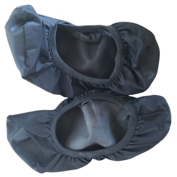 The covers fit right over the bottom of your shoes as expected. The textured bottom of the protectors enable you to move around the varying floor surfaces easily. The elastic band on top keeps the protectors on securely so you don’t have to worry about slipping out of them.